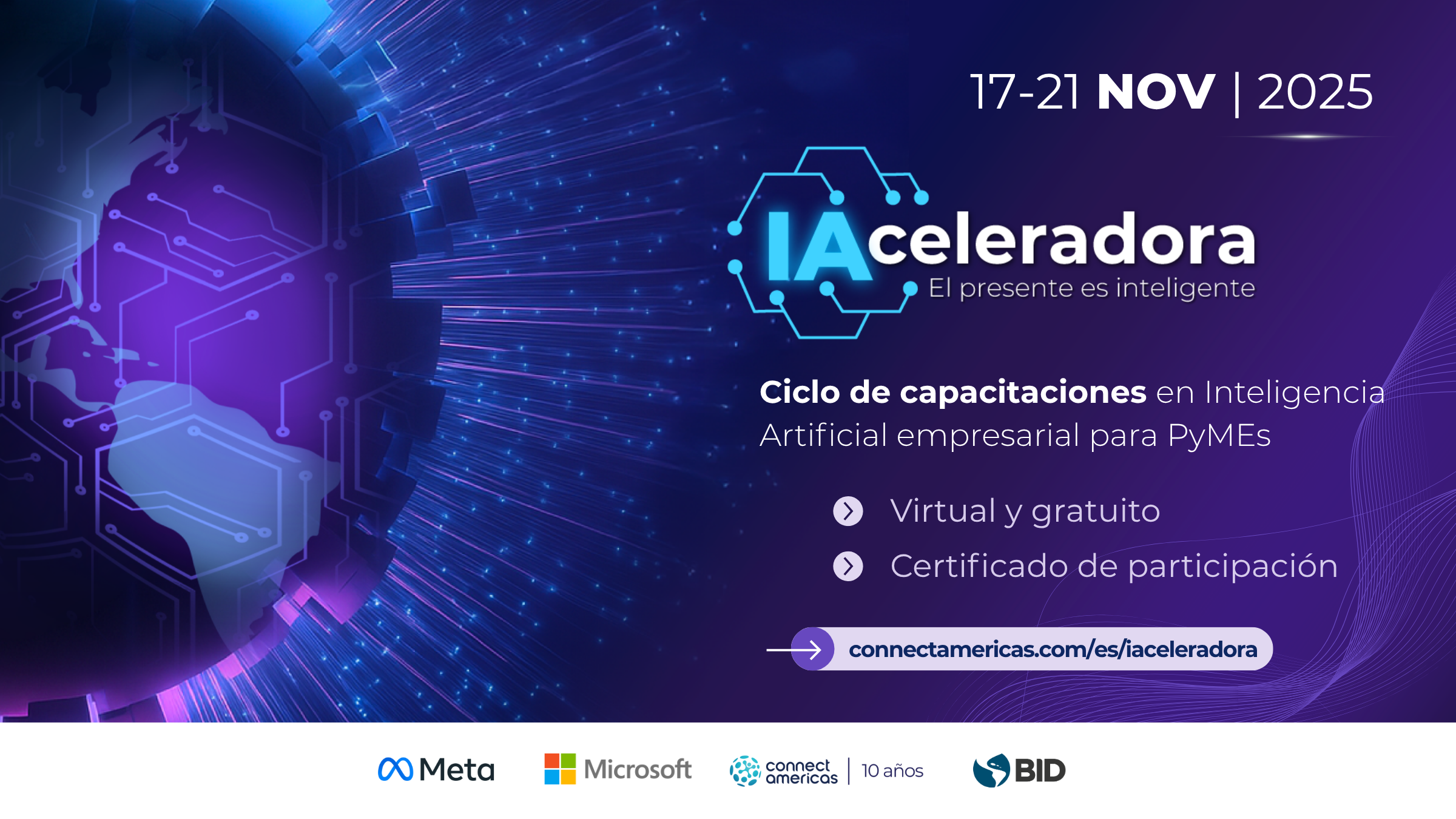ConnectAmericas, la plataforma empresarial del BID, lanza una nueva edición de IAceleradora, un ciclo gratuito y virtual de capacitaciones en inteligencia artificial para pymes de la región.